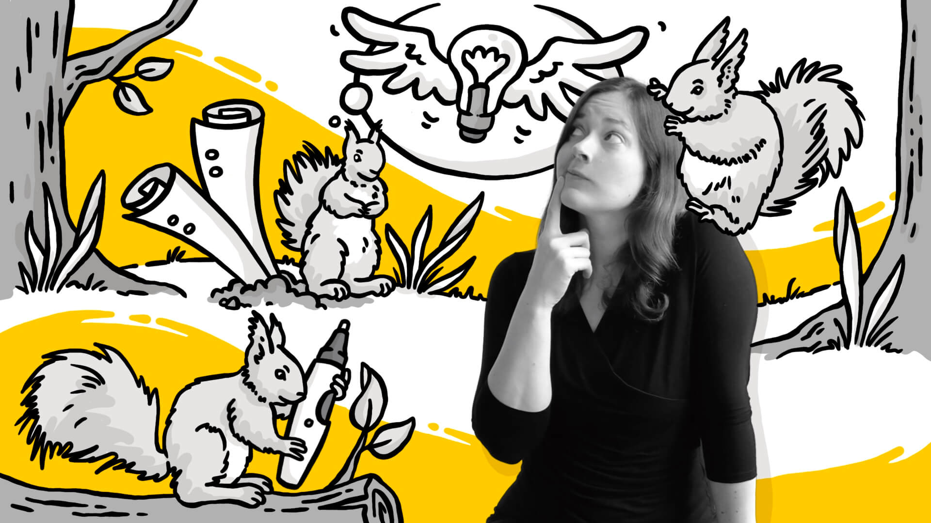Zeichnen: Das Ziel ist es, mit Schrift, Farbe, Struktur, Schatten, Bewegung und Bildern, komplexe Inhalte schnell und ansprechend aufs Papier zu bringen.