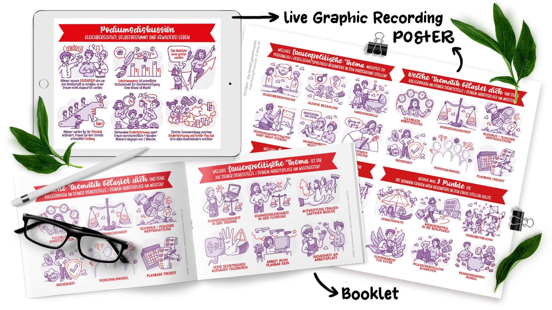Mit meinem Graphic Recording habe ich die vielfältigen Perspektiven und Impulse visualisiert, um sie greifbar und nachhaltig nutzbar zu machen. Das Bild wurde noch vor Ort auf eine Postkarte gedruckt und den Teilnehmer:innen als Erinnerung mitgegeben.