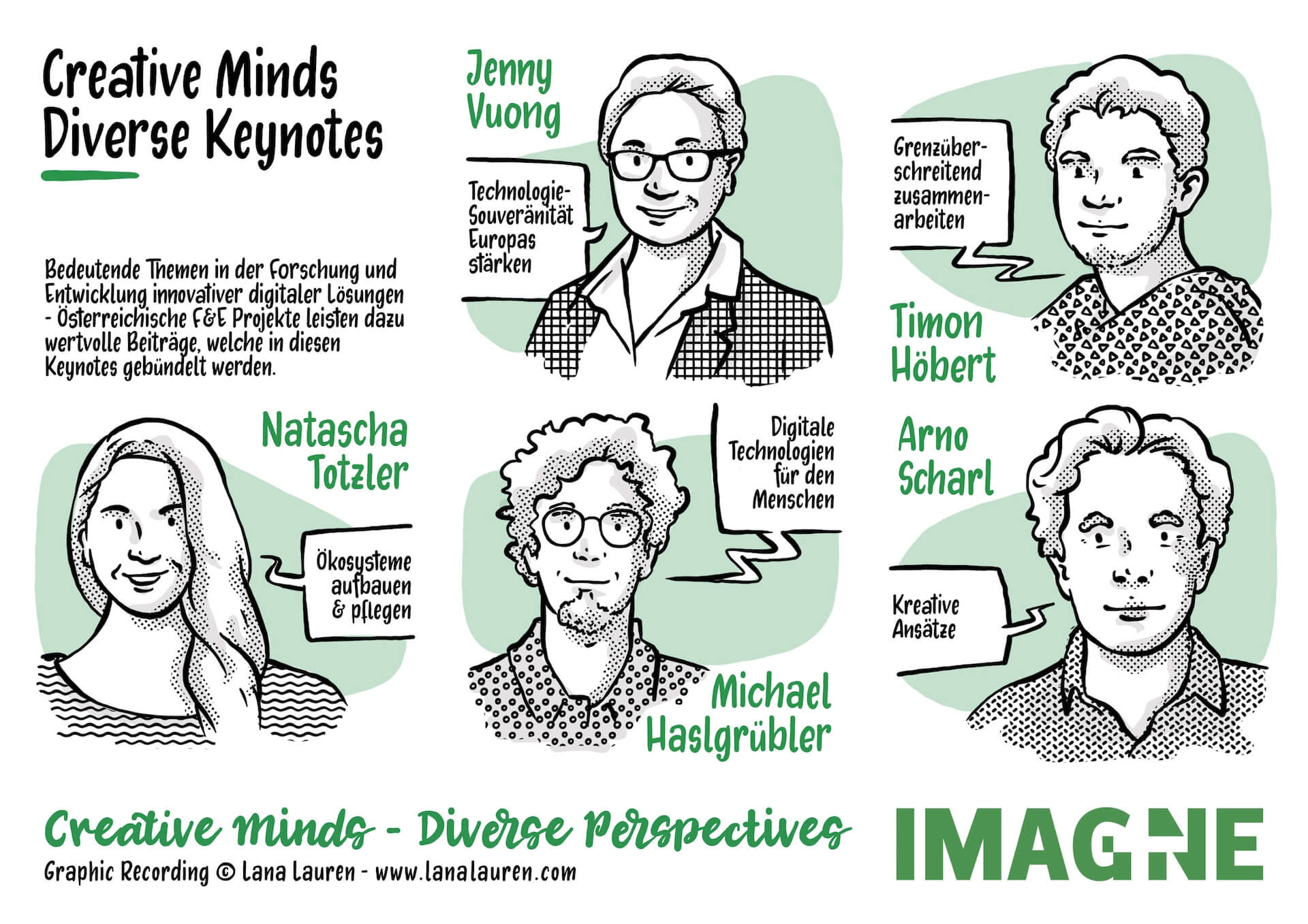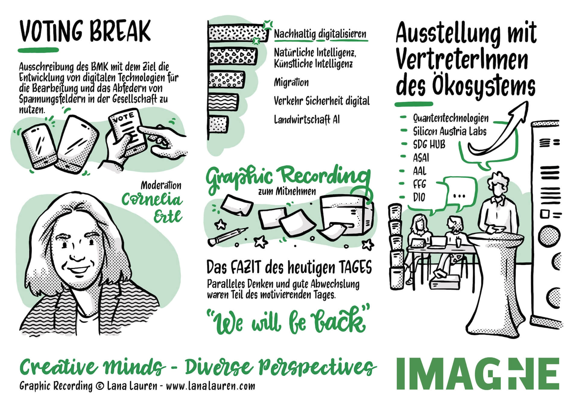 Das Bundesministerium für Klimaschutz, Umwelt, Energie, Mobilität, Innovation und Technologie (BMK) und die Österreichische Forschungsförderungsgesellschaft (FFG) laden Sie herzlich zur IMAGINE 23 unter dem Motto „creative minds – diverse perspectives“ ein. Bei dem Event rund um digitale Technologien werden spannende Projekte von Forscher:innen thematisch gebündelt präsentiert und reflektiert – und das in einer kreativen und anregenden Atmosphäre.