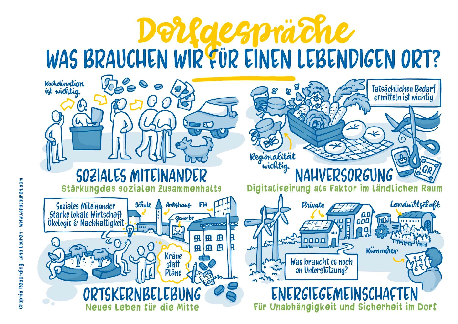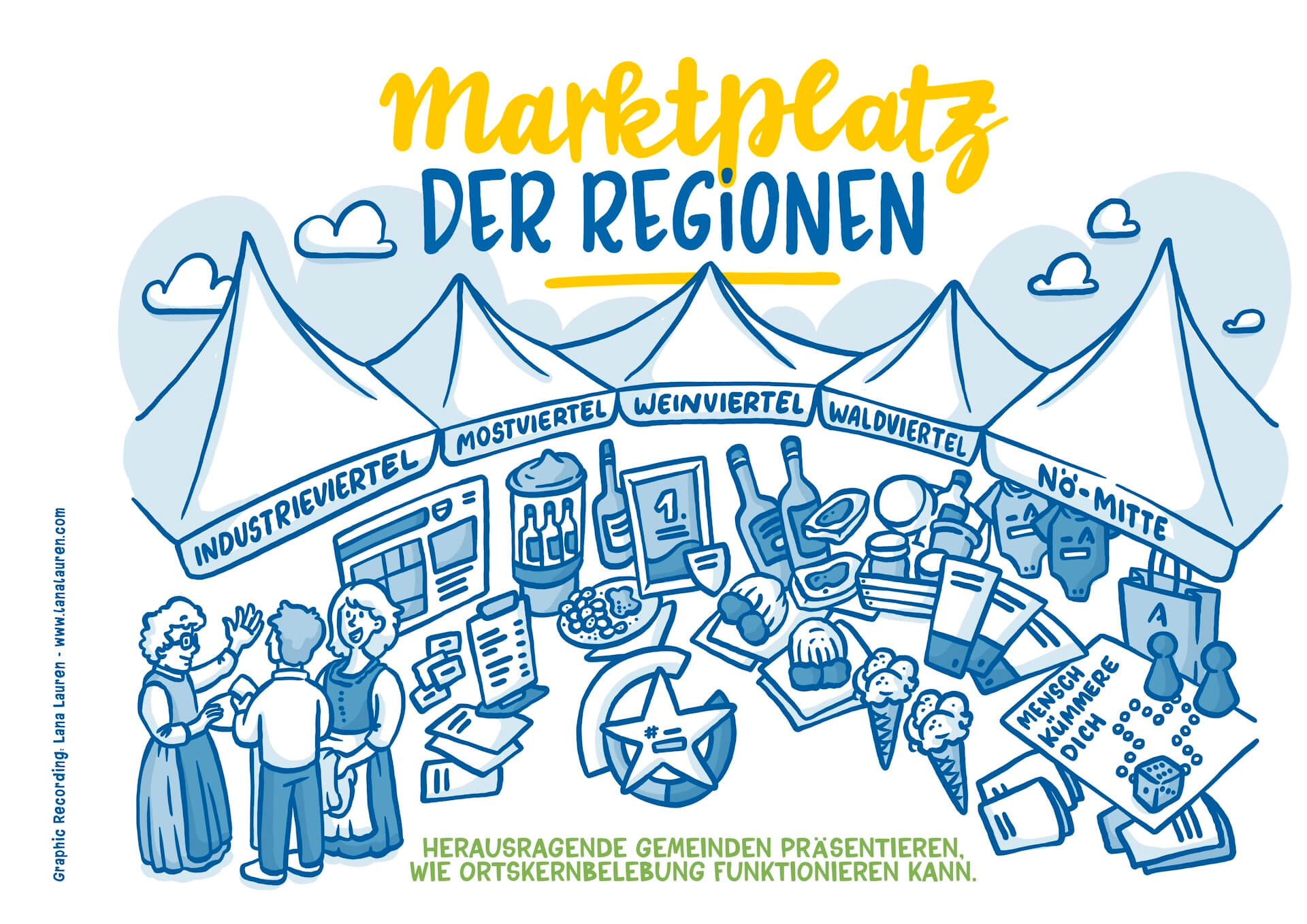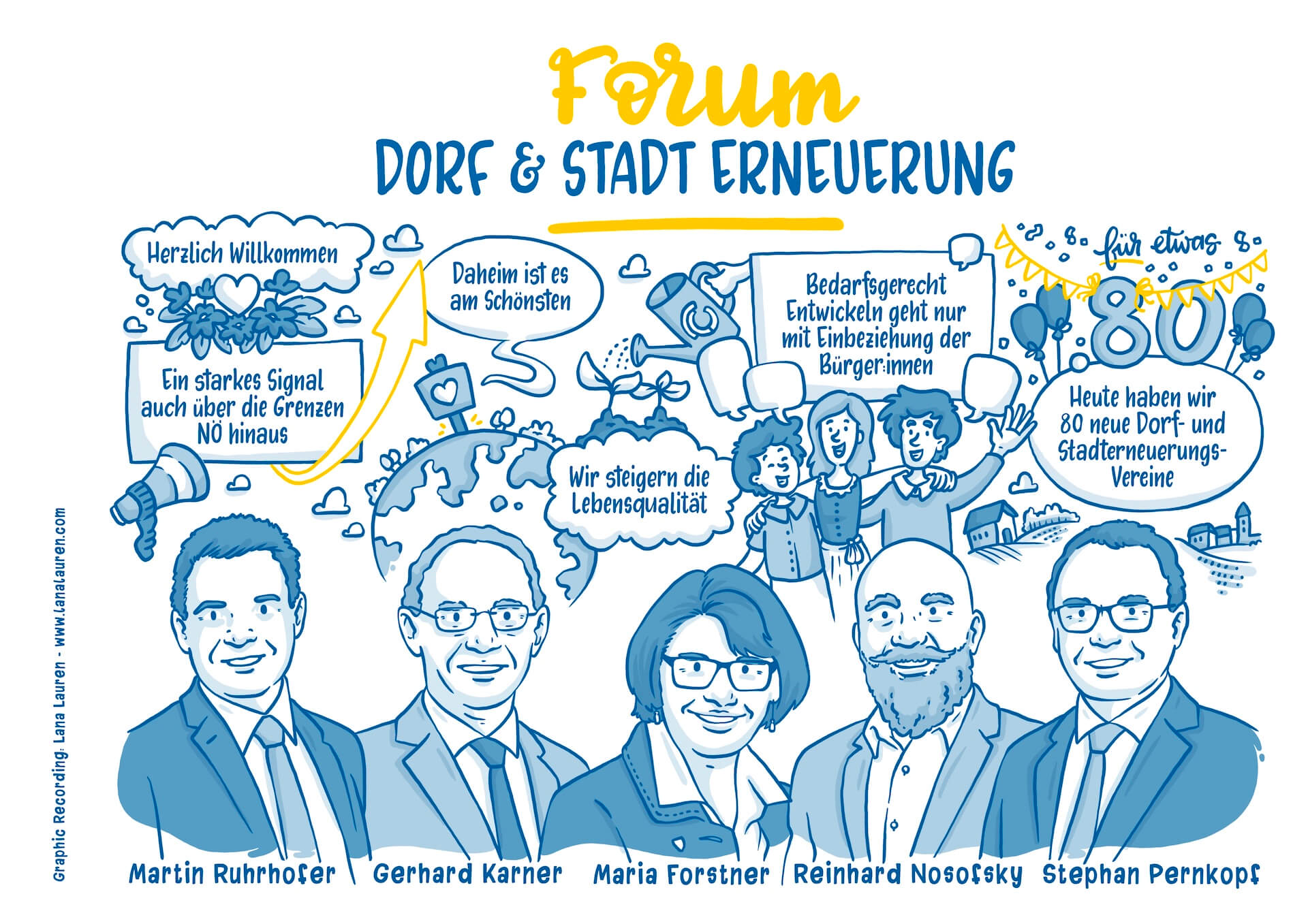 Beim Forum Dorf & Stad, am Freitag, 14. Juni 2024 in Reinsberg kamen über 800 Besucher:innen - darunter auch mehr als 100 Dorfheld:innen aus ganz Niederösterreich, die aufgrund ihres Engagements von der Gemeinde für diese Auszeichnung nominiert wurden. Es gab nicht nur eine phantastische Musikbegleitung von regionalen Orchestern sondern auch spannende Diskussionsrunden und Vorträge, bei denen man sich von Best Practice Beispiel inspirieren lassen konnte. Ich habe die Veranstaltung visuell begleitet und in Bildern festgehalten. Diese wurden nicht nur vor Ort als Zusammenfassung genutzt sondern auch nachträglich für die Berichterstattung und ein Booklet, in dem man das Event nochmal nachlasen kann.