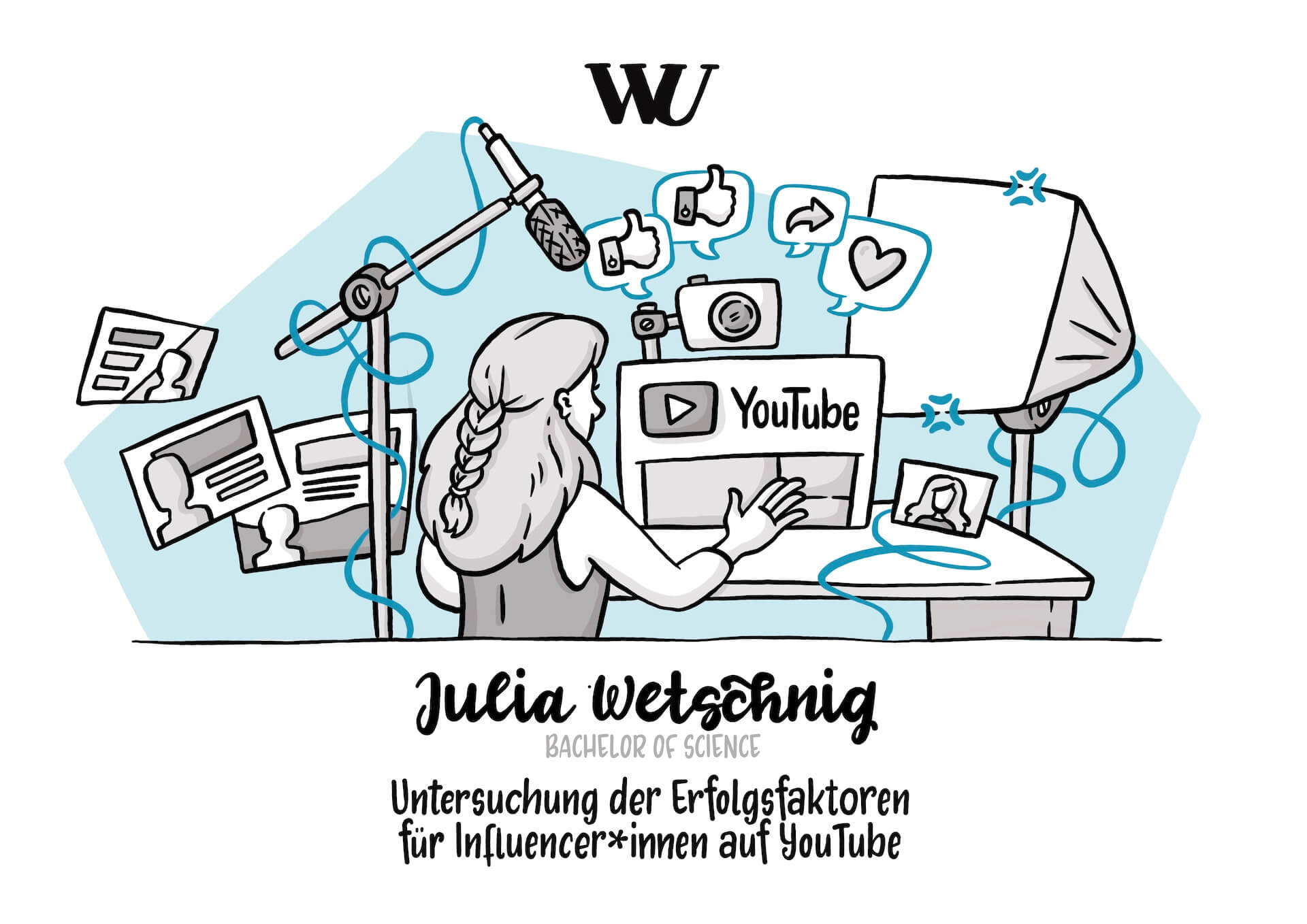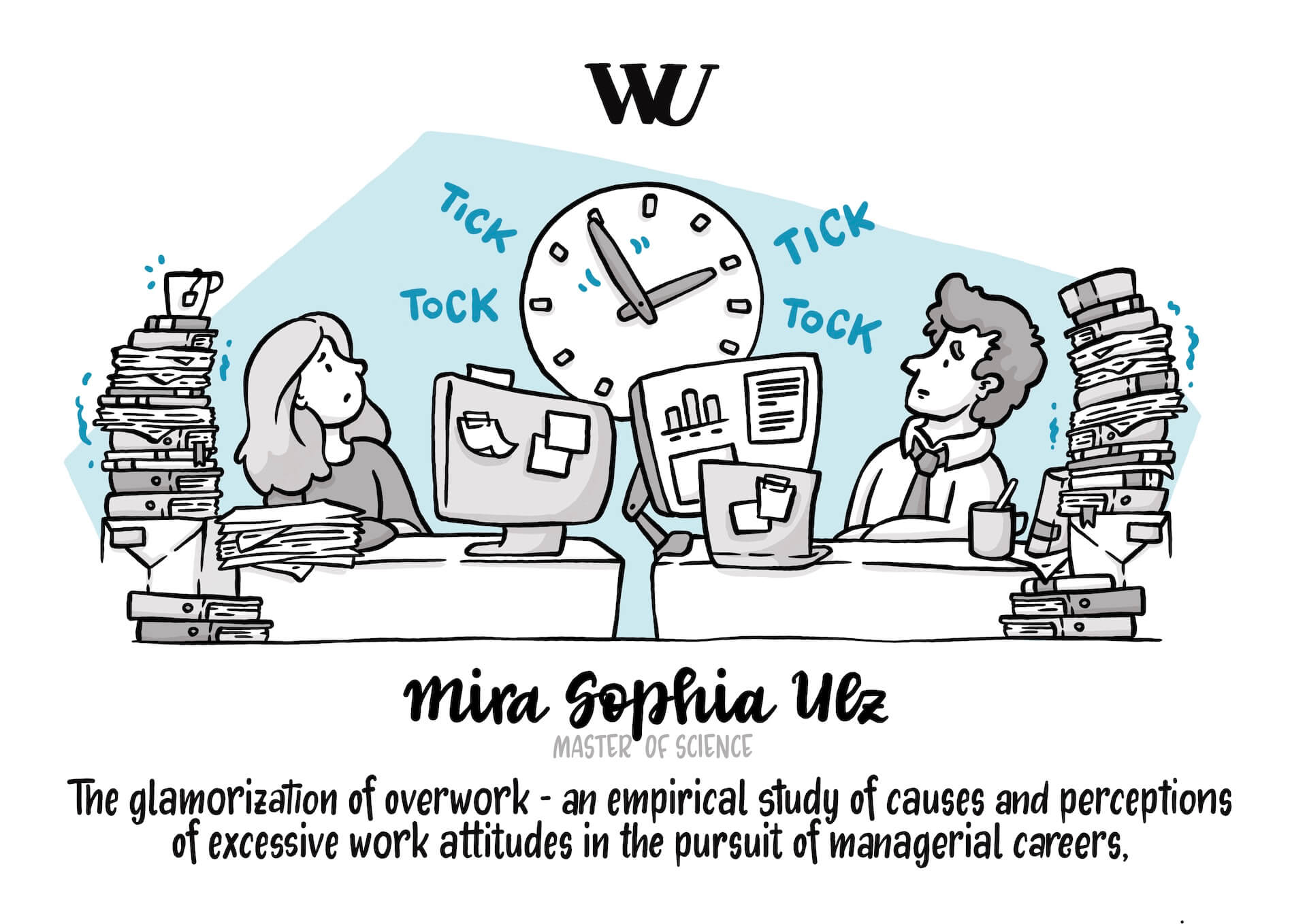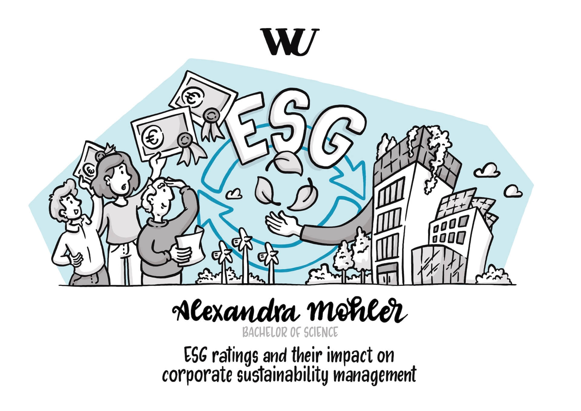 Jedes Jahr werden an der WU-Wien besonders herausragende Forscher:innen und Bachelor- sowie Master-Arbeiten im Rahmen des TALENTA-Awards ausgezeichnet. Bei der Preisverleihung 2023 wurde den Gewinner:innen neben einer Urkunde auch eine Illustration überreicht, die ihre Forschungsergebnisse zusammenfasst.