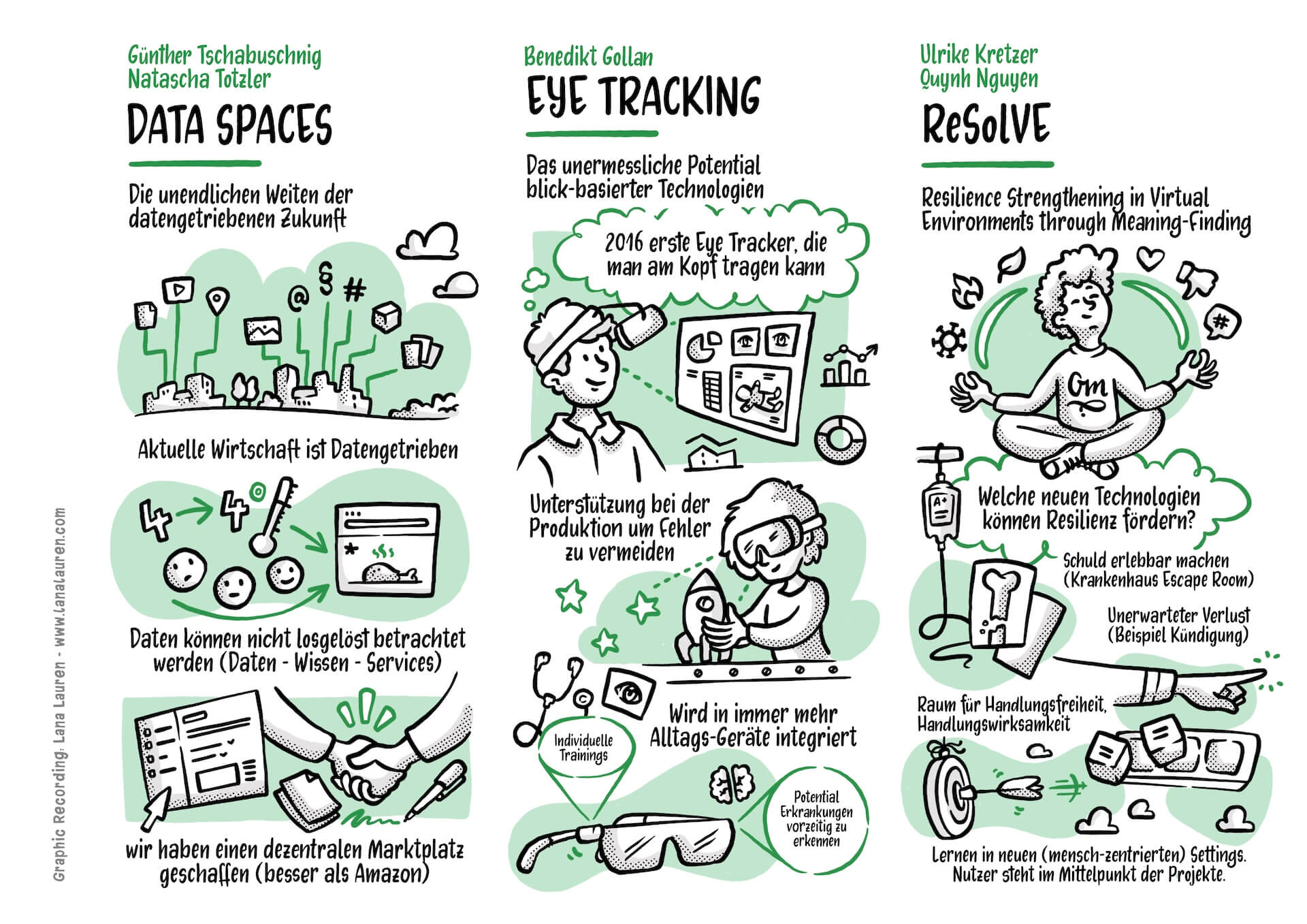 Es war mir eine große Freude, auch dieses Jahr wieder die IMAGINE, das Flagship-Event des österreichischen Technologieministeriums (BMK) und der Österreichischen Forschungsförderungsgesellschaft (FFG), als Graphic Recorderin zu begleiten. Dieses Event ist eine Plattform für die innovativsten Projekte und Forschenden im Bereich Digitaler und Schlüsseltechnologien in Österreich. Mein Graphic Recording hielt die Highlights der Veranstaltung fest – von der Eröffnung über die spannenden Keynotes bis hin zu den neuen Calls zu Themen wie Robotik, Künstliche Intelligenz und Smart Textiles.